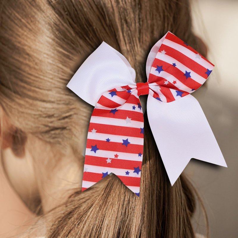 4th of July hair bow tie accessories feature patriotic red white blue, perfect for any patriotic party, American party,carnival, dress-up and patriotic parade, elegant and fashionable for any hair type in your daily wearing.