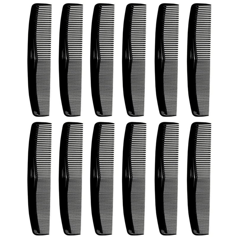 Comfort Hair Dressing Table Coarse/Fine Hair Comb Set, Black, 8 Inch (12 Pack)