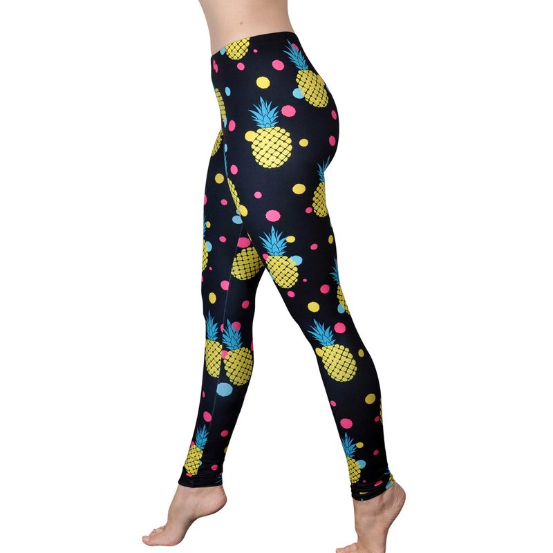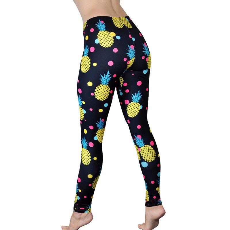 Comfy Yoga Pants - Soft Milk Silk Workout Leggings for Women - Fun Lightweight Printed Yoga Leggings (Pineapple Love, US 4-10)