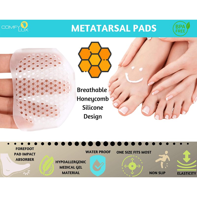 - π WHAT YOU NEED: Are you tired of not being able to wear those gorgeous high-heels because your nasty metatarsalgia is acting up? Would you like to get rid of unpleasant feet pain in a medication-free manner? The COMFYLUX metatarsal pads for women are easy to use, very soft and comfortable, it is always kept in place and you can use it all day, for the best foot pain relief solution on the market
