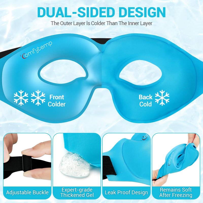 - Quickly Relieve Eye Discomfort: Do you use phones, or computers for a long time? Are you used to staying up late and having insomnia? Do you often wear makeup? Are you suffering from dry eyes, dark circles, or migraines? Don't worry, Comfytemp cold gel eye mask can help you and restore your eyes. Ice pack for eyes can relieve dry eyes, sunburn, dark circles, puffiness, soreness, sinus discomfort, migraines, etc. The eyes are the windows of the soul, let's make your eyes healthier and brighter.