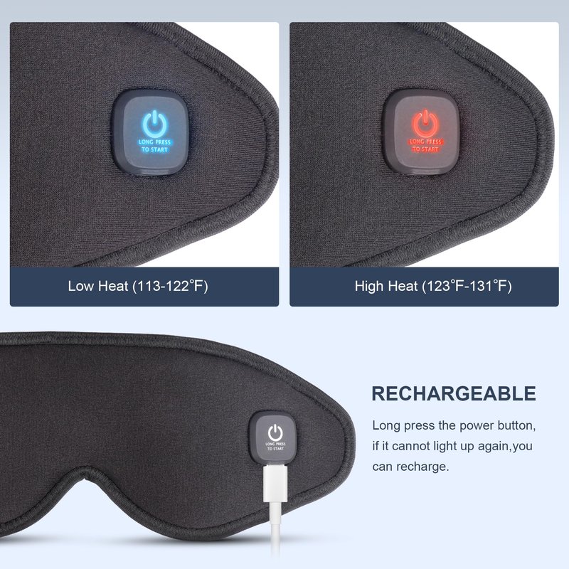 - 【 Great Journey Mate 】 Heated eye masks provide total dark environment and relaxes eyes on the flight, in the cars, or in hotels. The dry eye mask is USB-powered and is compatible with a regular 5V/1-2A USB outlet, which allows it to be powered by wall chargers, laptops, portable power banks, and even car chargers.