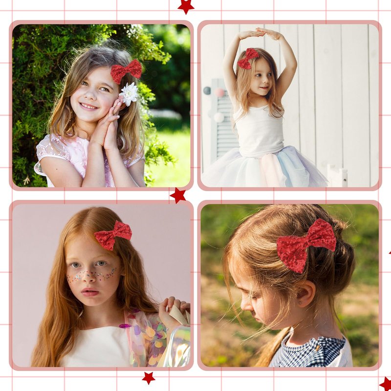 - 【Exquisite Handcraft】Our red hair bow is meticulously handmade, featuring high-quality sparkly glitter sequins, making you look cute and attractive. Shiny bow accessories, sweet new fashion design, suitable for girls to tie, soft and elegant, red hair bows for girls can be nice accessories for all princess.