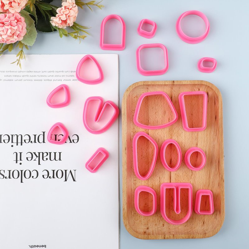 - 【Pink clay cutter】18 different shapes of polymer clay earring cutters, clay cutters allowing you to have different earrings, clay jewelry making supplies adding more interest to your earring making