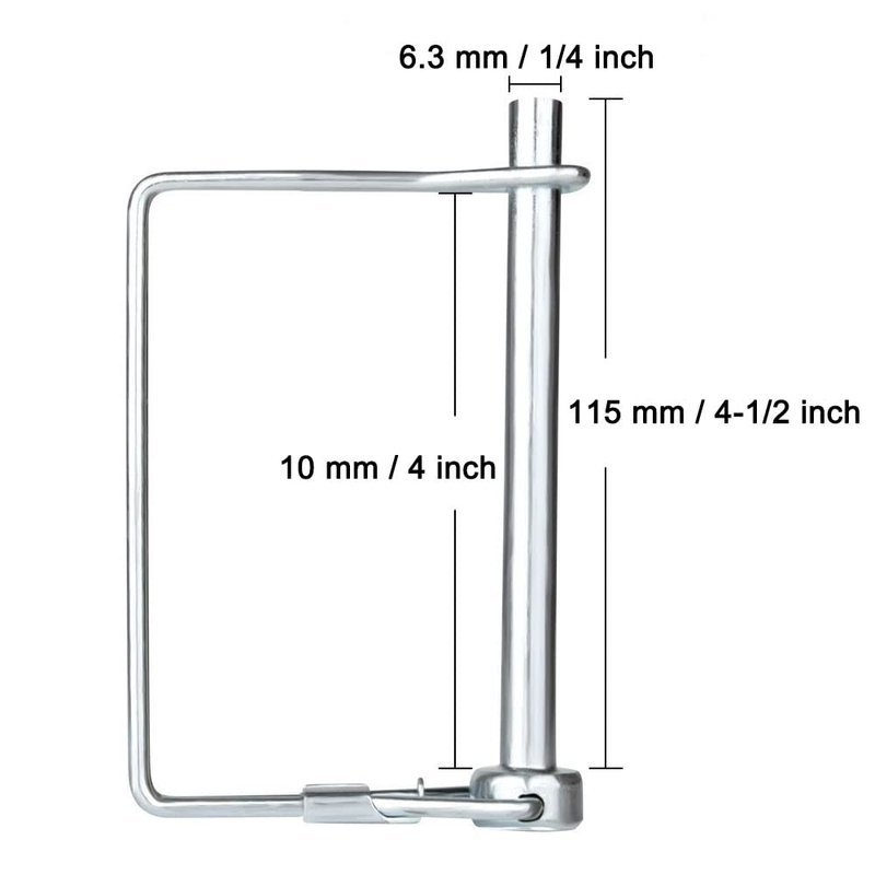 • 【Standard Size】The square shaft locking pin has a diameter of 6.3mm/ 1/4 inch and a length of 100 mm /4 inch, suitable for a variety of trailer connectors.