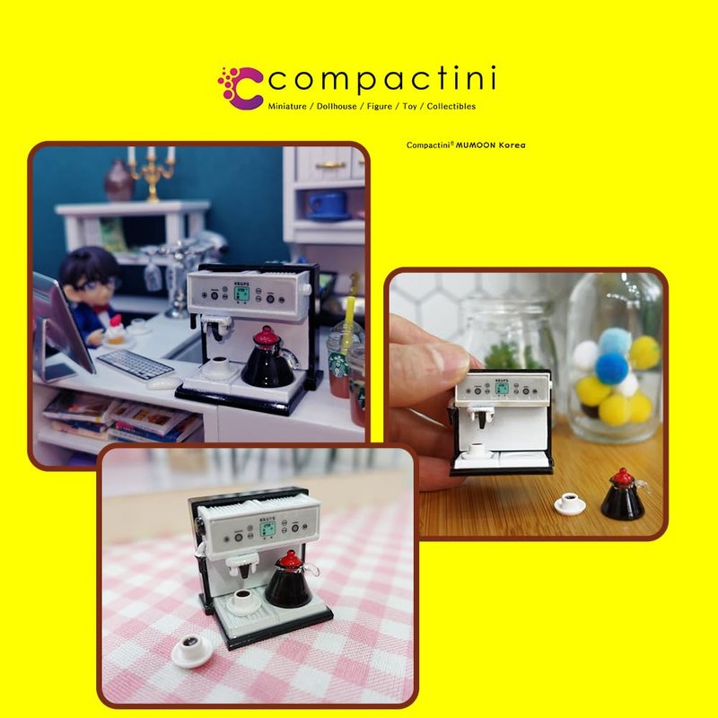compactini Miniature Set 1:12 Scale Models Dollhouse Accessory Coffee Pot Cup Beverage Bottle Kettle (Coffee Machine Brown)