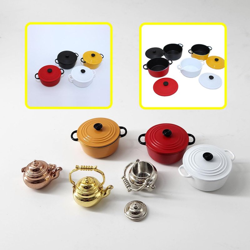 compactini Miniature Set 1:12 Scale Models Dollhouse Accessory Coffee Pot Cup Beverage Bottle Kettle (Dutch Oven Red)