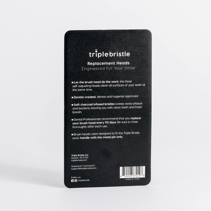 COMPATIBLE WITH THE TRIPLE BRISTLE MAX ONLY | Triple Bristle Max Replacement Brush Head Refills | Charcoal Infused | Innovative 3 Head Design | Compatible with Triple Bristle Max ONLY | 2 Pack (Black)
