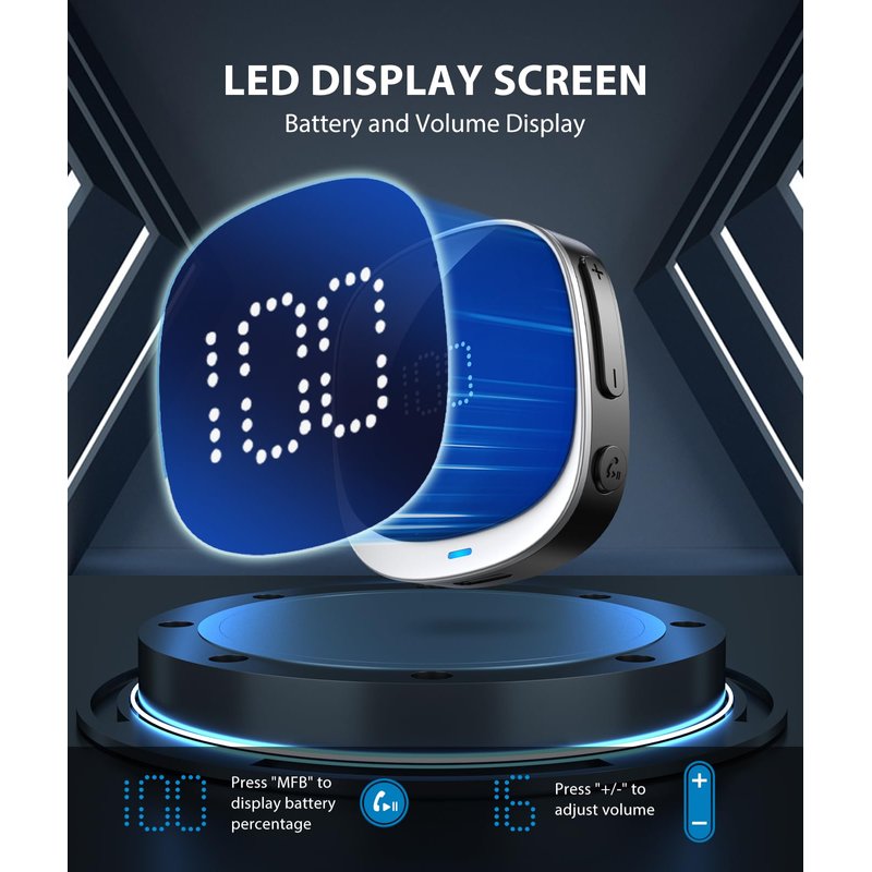 - 【CONVENIENT LED SCREEN DISPLAY】This Bluetooth receiver has a clear LED screen that shows the real-time remaining power and volume levels. You can easily check the battery percentage by clicking the “MCF” button, and adjust the volume by tapping “+/-”. It will remind you to charge in time so you can enjoy music without interruption.