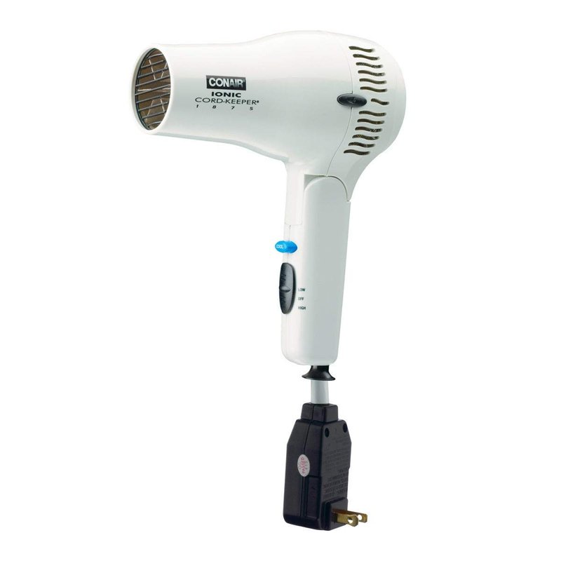 Make your guests feel at home in your hotel, motel, or extended-stay facility with the Conair 169WIW white cord keeper hair dryer. A convenient, push button cord keeper retractable cord frees up counter space when not in use. The Conair 169WIW white cord keeper 1875 watt hair dryer also features 2 heat and 2 speed settings to meet the demands of all of your guests.