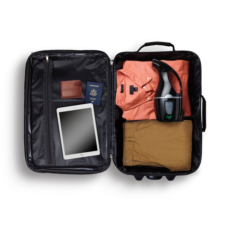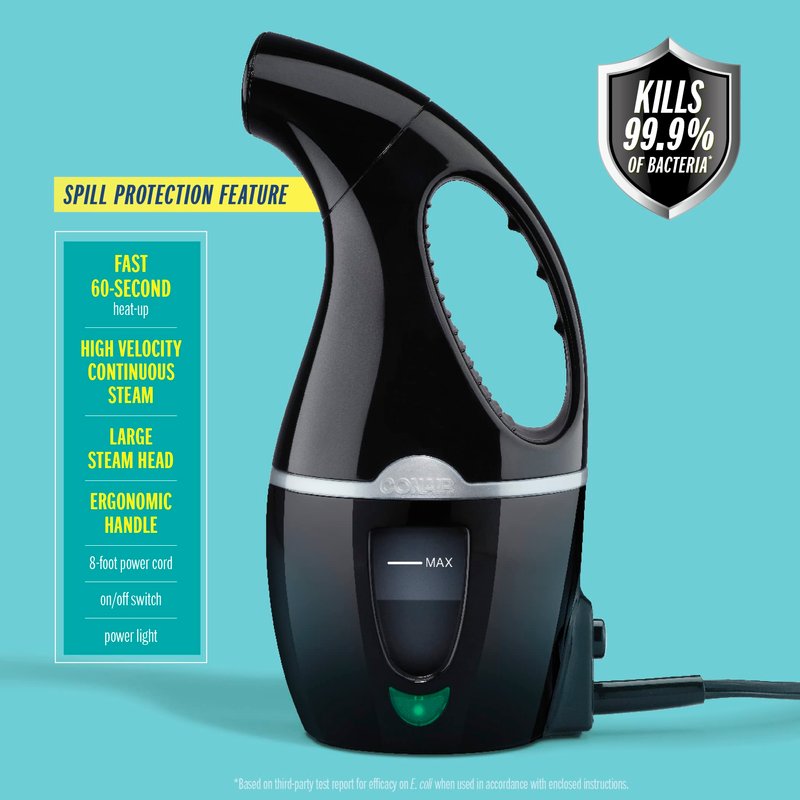 - Compact Design: This steamer is ideal for travel and on the go touchups, heating up fast and dewrinkling fabrics in minutes. Features an ergonomic handle, spill protection feature, and measures only 9 x 5.5 inches with a large, removable steam head.