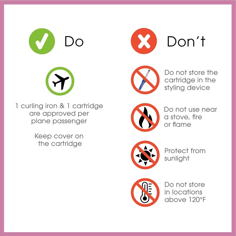 - Cartridge Curling Iron Replacements: An essential for travel and home use, these refill cartridges don't expire and the butane doesn't evaporate in the tightly sealed canister so you can power your compatible hair curler or styler whenever you need a spare cartridge