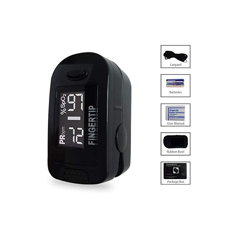 Concord BlackOx Fingertip Pulse Oximeter with Reversible Display, Carrying Case, Lanyard and Protective Cover