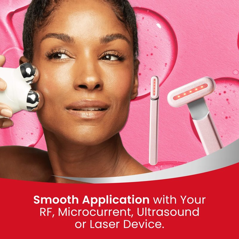 - MAXIMIZE DEVICE PERFORMANCE: The perfect balance between effectiveness and ease of use of your at-home beauty devices. Our transparent, non-sticky gel glides effortlessly, ensuring max conductivity. Works with microcurrent, ultrasonic, RF, IPL.