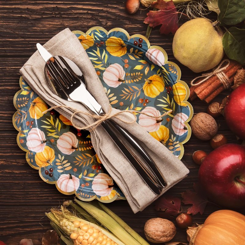 - Serves 50 Guests: Set includes 50x 9-inch beautiful fall-themed party paper plates perfect for serving guests at your upcoming Thanksgiving dinner.
