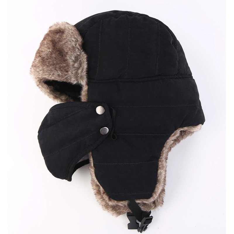 Connectyle Outdoor Trooper Trapper Hat Warm Winter Hunting Hats with Ear Flaps Mask Aviator Hat Black