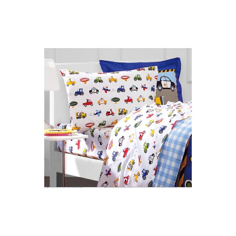 Construction Trucks, Police Cars, Tractors, Boys Twin Comforter Set (5 Piece Bedding)