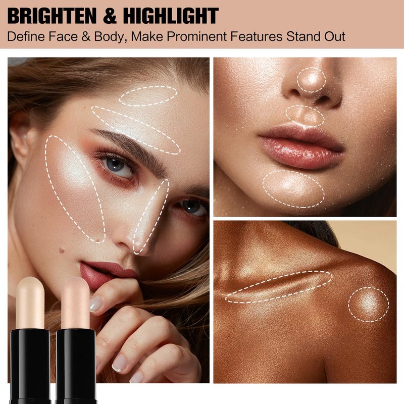- 【Sculpted 3D Face Makeup Look Made Easy】 SUSIKEKI highlighting & contouring duo stick shade, brighten, shape and blend like a magic! 【HOW TO USE】Swipe the deeper end to shape and sculpt, then apply the lighter shimmery end to brighten and highlight. Use your finger pulps, beauty blender or contour brush to gently dab(do not pull hardly) the product and easily blend them well for a natural gorgeous finish! Customize your makeup look with these super buildable shades!