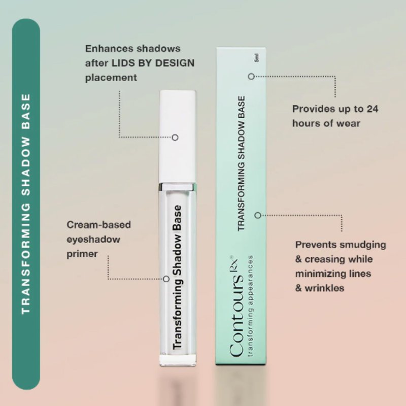 - Transforming Shadow Base - Our transforming eye base primer is designed to extend and deepen eyeshadow pigments maximizing the color. Specifically designed to be applied on top of Lids by Design correcting strips for the ultimate desired look.