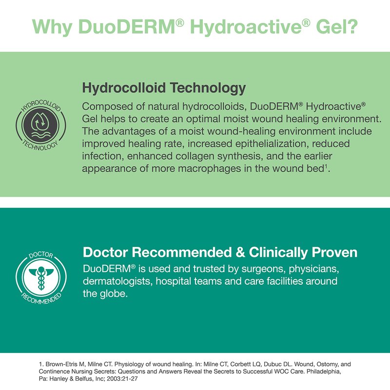 - DuoDERM Hydroactive Sterile Gel is a clear, preservative-free, viscous hydrogel that incorporates a unique ConvaTec hydrocolloid formulation that distinguishes it from other hydrocolloid dressings