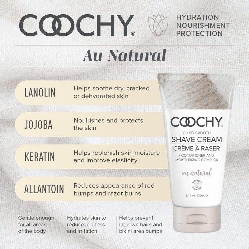 Coochy Intimate Shaving Cream | Shave Conditioner & Moisturizer for Face & Body | Ideal for Sensitive Skin Care, Anti-Bump | Au Natural, 3.4 oz