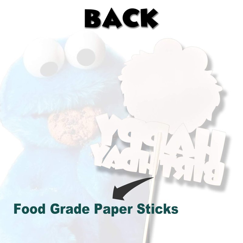 - Design: Cookie Monster themed topper, perfect for blue glitter birthday parties