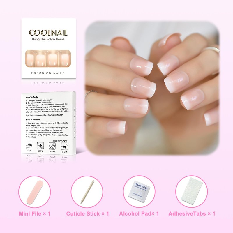 CoolNail Orange Pink Nude White French Fake Nails Squoval Square UV Gel False Press on Nails for Girl Full Cover Wear Finger Nail Art Tips