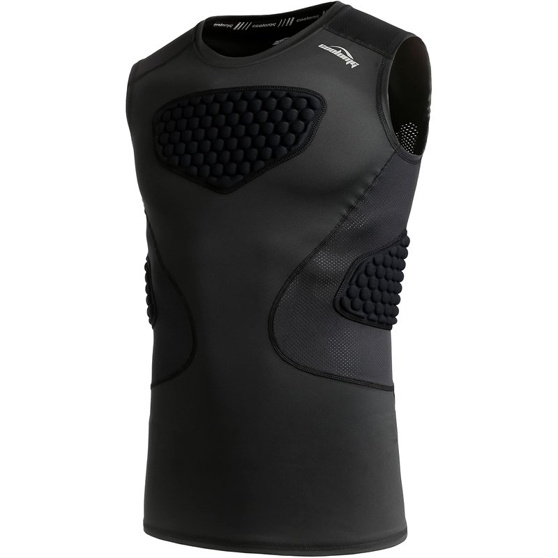 - Material: 85% polyester + 15% spandex. Breathable and elastic. Comfortable to wear, just like a second skin. The EVA foam padding protects your kids' sternum, heart chest and ribs area from sudden impacts and slight injuries from balls, pitches, and hard hits.