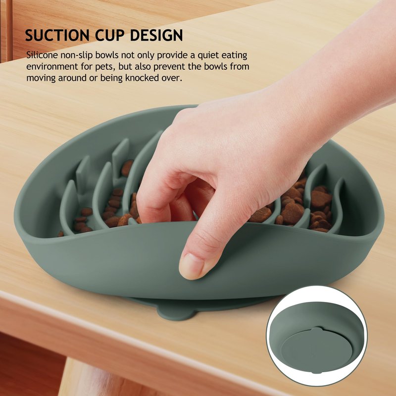 Coomazy Silicone Slow Feeder Dog Bowls, Slow Down Pet Eating Speed for Prevent Choking Promote Digestion, Green