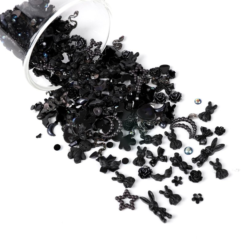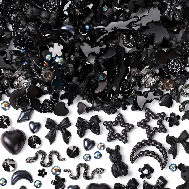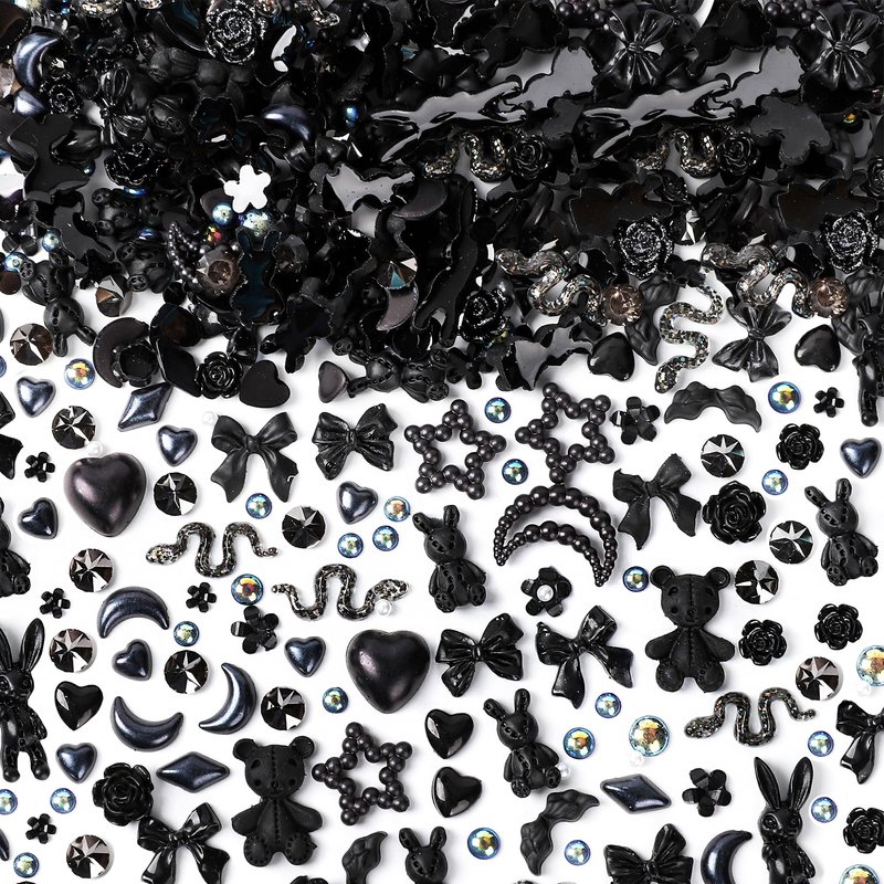 COOSLIM 110 Pieces 3D Nail Charms for Acrylic Nails, Camellia Rose Flower Butterfly Bowknot Heart Bear Rabbit Star Charms for Nail Art Designs DIY Accessories Craft(Black+2)