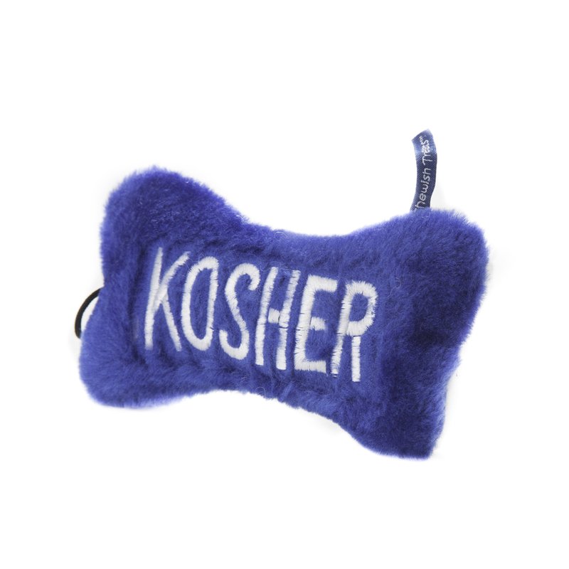 - Squeaker Plush Dog Toy Blue Kosher Bone Medium