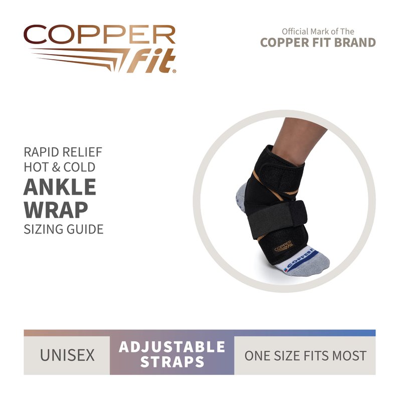 - Copper Fit ankle brace features a gel pack that can be heated or cooled for extra relief from every day pain.