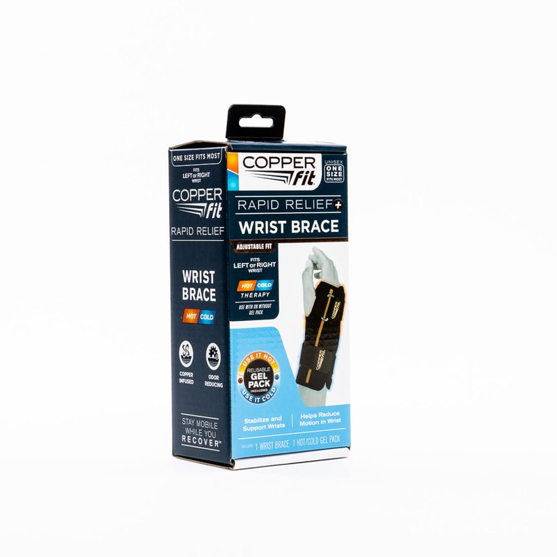 - Copper Fit wrist brace features a gel pack that can be heated or cooled for extra relief from every day pain.