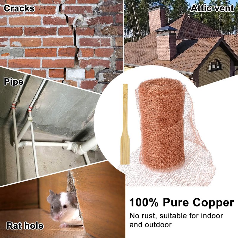 - 100% Copper: Mouse repellent is made not of copper alloy but of pure copper. Copper steel wool for mice is a stronger, stiffer and more flexible material than copper alloy, which makes it impossible for rodents to burrow through or chew on this woven screen copper wool. That's why the copper mesh rodent control is effective.
