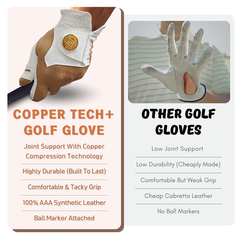 Step up your golf game with the revolutionary Copper Tech Golf Glove, designed to provide unparalleled support, comfort, and performance. This state-of-the-art glove is infused with advanced copper technology, ensuring optimal joint and muscle support while delivering an exceptional grip and durability. Whether you're a seasoned golfer or a weekend warrior, the Copper Tech Golf Glove is your perfect companion on the greens.