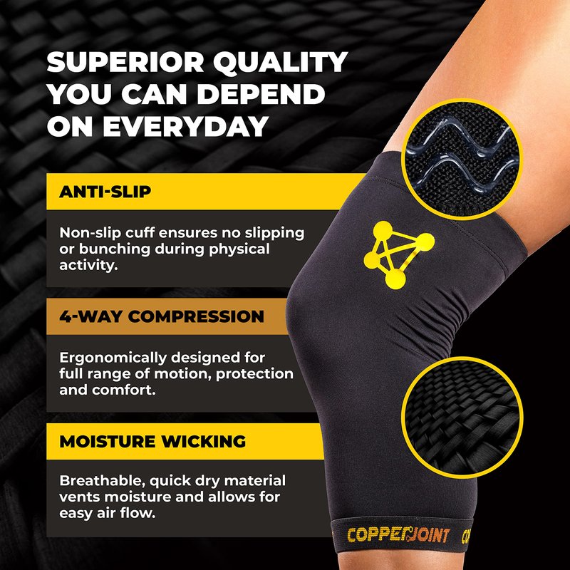 CopperJoint's knee sleeves for knee pain are ideally used as knee sleeves for women knee pain, knee compression sleeve women, compression knee brace, compression knee braces for knee pain, knee brace for running, running knee brace, knee brace sleeve, knee support brace, compression knee sleeve women, knee compression brace, knee compression sleeve plus size, workout knee brace, compression knee sleeve men, knee compression sleeve men, running knee sleeve, compression knee sleeves, arthritis pain relief, volleyball knee pads, leg compression sleeve, knee pain relief, knee compression sleeves men, knee sleeves for running, compression sleeve knee, knee weight lifting, copper knee wrap, knee support sleeve for pain relief.