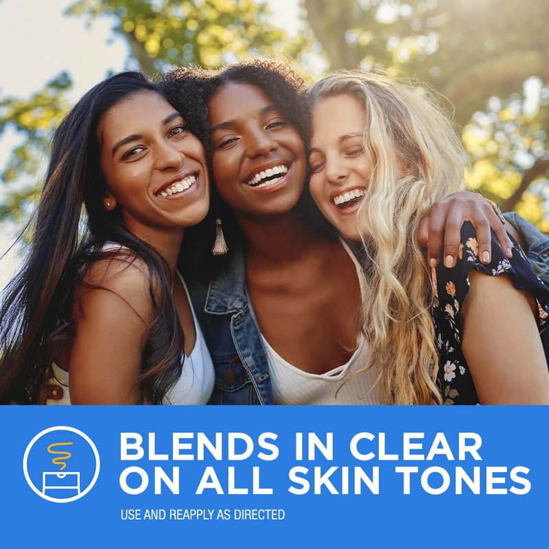 - For All Skin Tones: Lightweight sunscreen formula rubs on easily, blends in clear, and stays clear on all skin tones