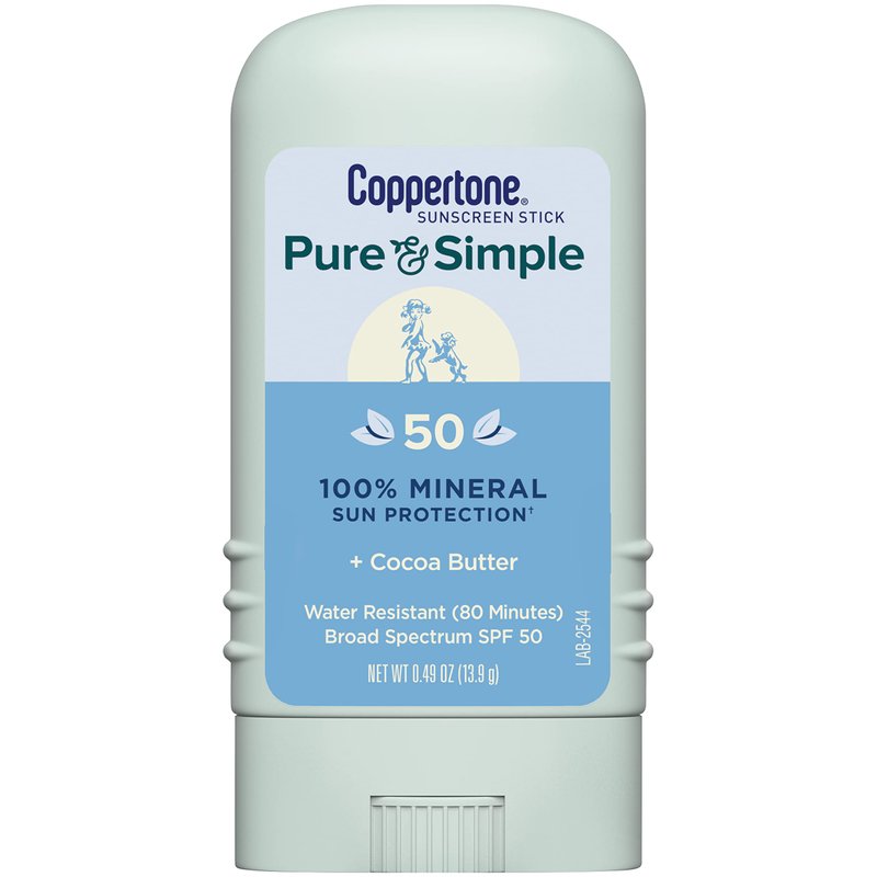 - One 0.49 ounce Coppertone Pure & Simple SPF 50 Sunscreen Stick