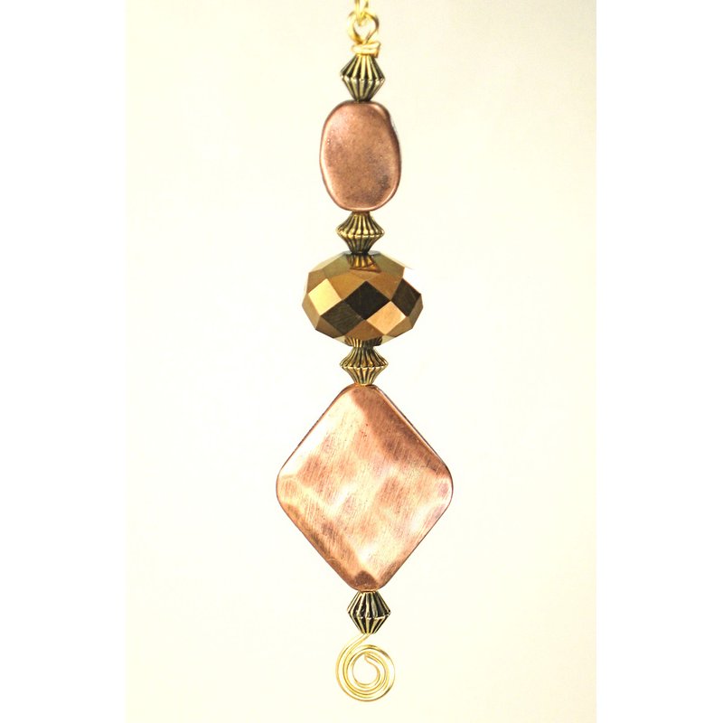 Coppery Diamond and Faceted Lampwork Glass Ceiling Fan / Light Pull
