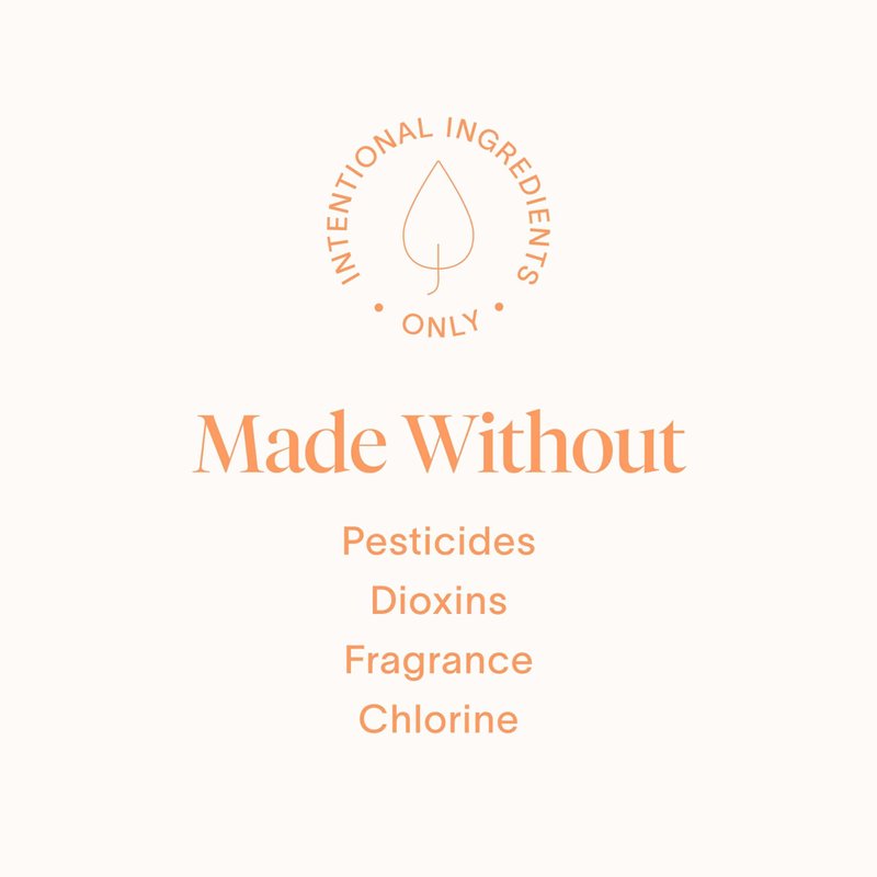 - 100% ORGANIC COTTON: Tampons made from 100% certified organic cotton – because what you put in your body matters. Made without pesticides, dioxins, rayon, or chlorine; free of fragrance and dyes. FSA/HSA Eligible.