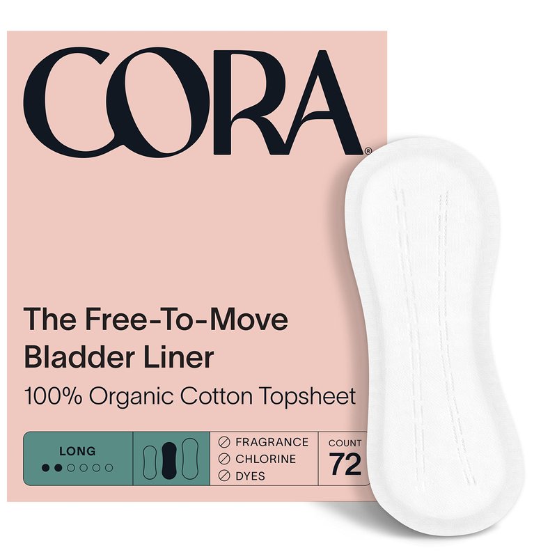 Cora Ultra Thin Organic Bladder Liners | Incontinence & Postpartum Pads for Women | Panty Liners for Bladder Leaks | Breathable Cotton (72 Long Liners)