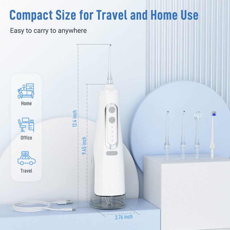 - 【Convenient Multi-Purposes Oral Health Care】 4 interchangeable tip for multi-purposes cleaning, including tongue cleaner for removing tongue coating, jet tip for high efficiency teeth cleaning and teeth brush tip for brushing. Suitable for braces cleaning and daily dental care.