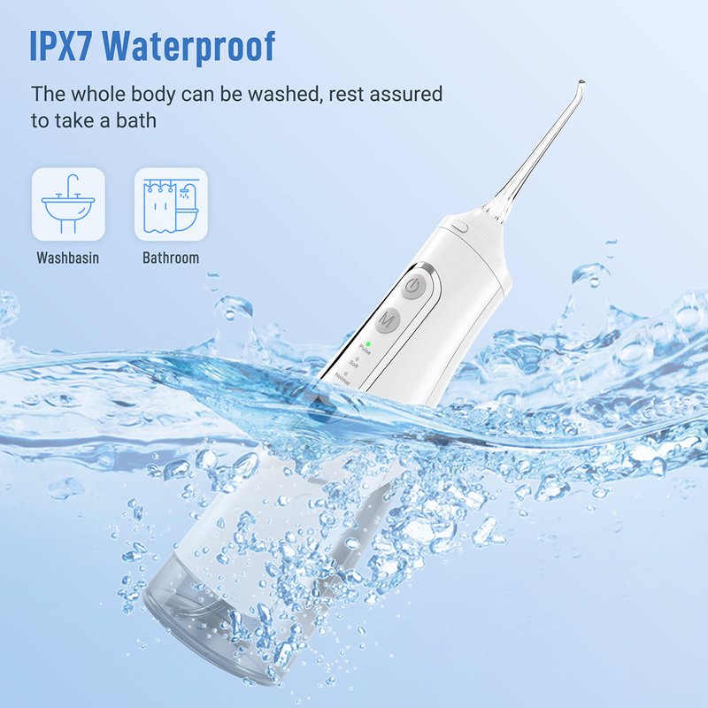 - 【Reliable and Durable】 1500 mAh high capacity battery with a tested at least 800 times recharge cycle life. 310 ml large water tank can sustain for 1 time oral cleaning sequence. 1 time fully charged last for approximately 40 times of usages. IPX7 waterproof make it enjoyable to use even in bath.