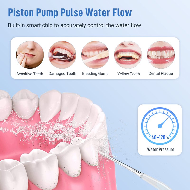 - 【Teeth Cleaning, Teeth Whiten and Gum Care】Infiwarden present you the 2022 upgraded unique pulse water dental flosser with high pressure water pulse function jetting high frequency strong water pressure to remove food residue and teeth plague hidden. Help you recover from bleeding gums, bad breath. Ideal solution for orthodontic brace and bridge users.