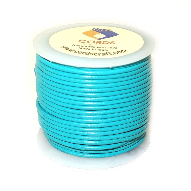 Cords Craft® | 1.5mm Round Leather Cord for Jewelry Making Bracelets Necklaces Hair Accessories Dog Collar Beading Work Hobby and DIY Craft Regular Shiny (Cyan, 21.87 Yards)