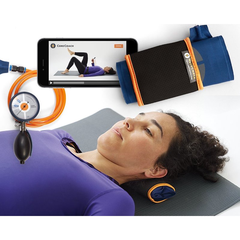 *Durable nylon-coated Air Pillow made from the same fabric as camping mats (TPU not PVC) for a better seal *BioFeedback Gauge for immediate visual guidance (0-70mmHg) *Thin, comfortable Neoprene Waist Belt to help keep your CoreCoach in the right position *Instruction Booklet and Online Training Videos for getting started *FREE Mobile Apps for iOS and Android with all of our 12 Training Videos *FREE Carrying Bag for taking your CoreCoach with you *FREE NeckCoach to strengthen your deep neck flexors and relieve pain from text neck