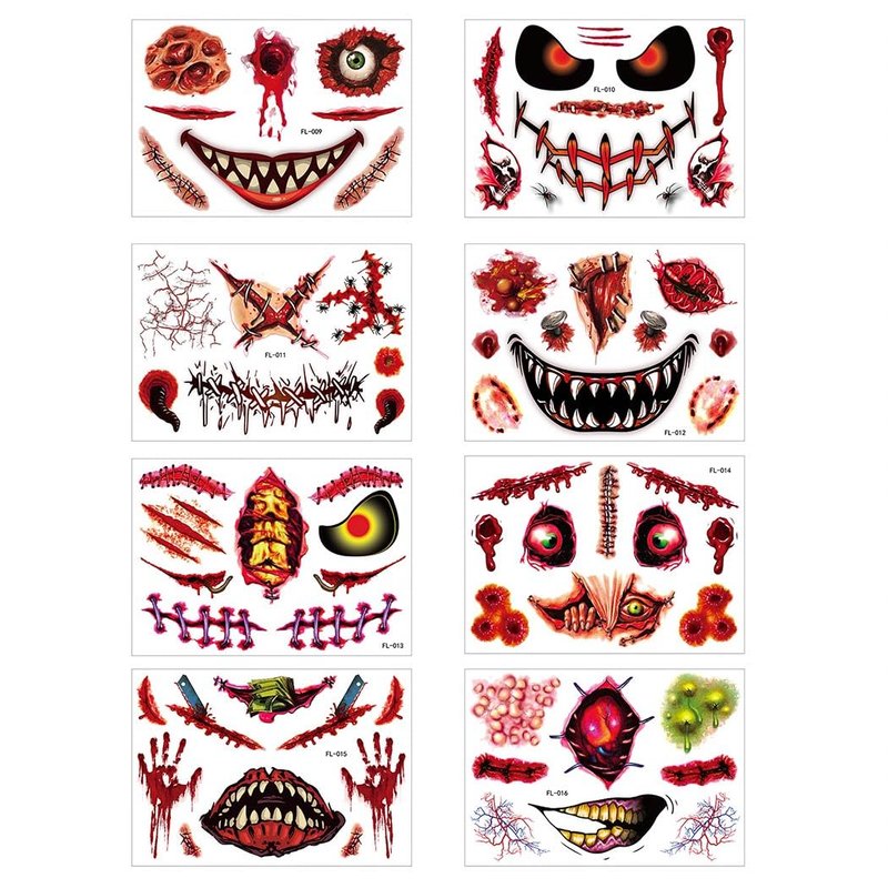 - High Quality Fake scars Halloween body make up stickers tattoo 8pcs (8 sheets) 6.7inch x 4.7inch。