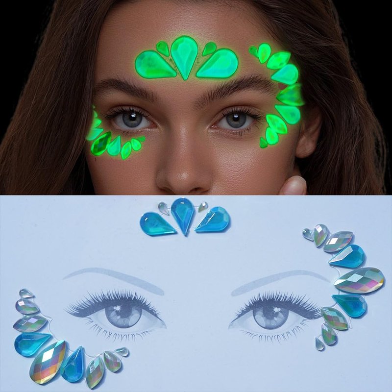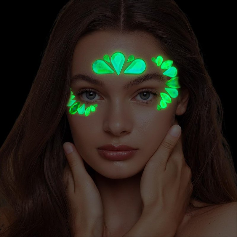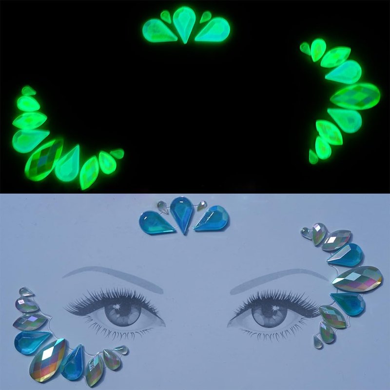 - Water diamond stickers can emit light in the dark, and the darker the environment, the more pronounced the effect. Facial jewelry decoration is suitable for carnival parties, role-playing, Halloween, Valentine's Day, dressing up, bachelorette parties, makeup parties, weddings, holiday parties, and masquerade parties.