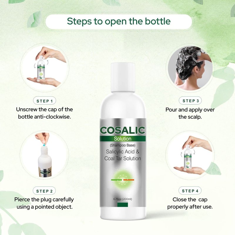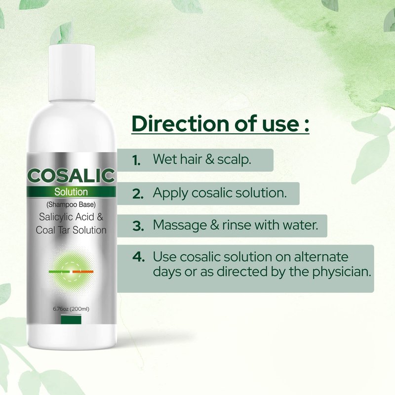 Cosalic Coal Tar and Salicylic Acid Solution/with Salicylic Acid for Dry Scalp Itch Relief Dandruff Free Shampoo/for Psoriasis & Seborrheic Dermatitis - Instant Result - 6.76 Fl Oz (Pack of 1)