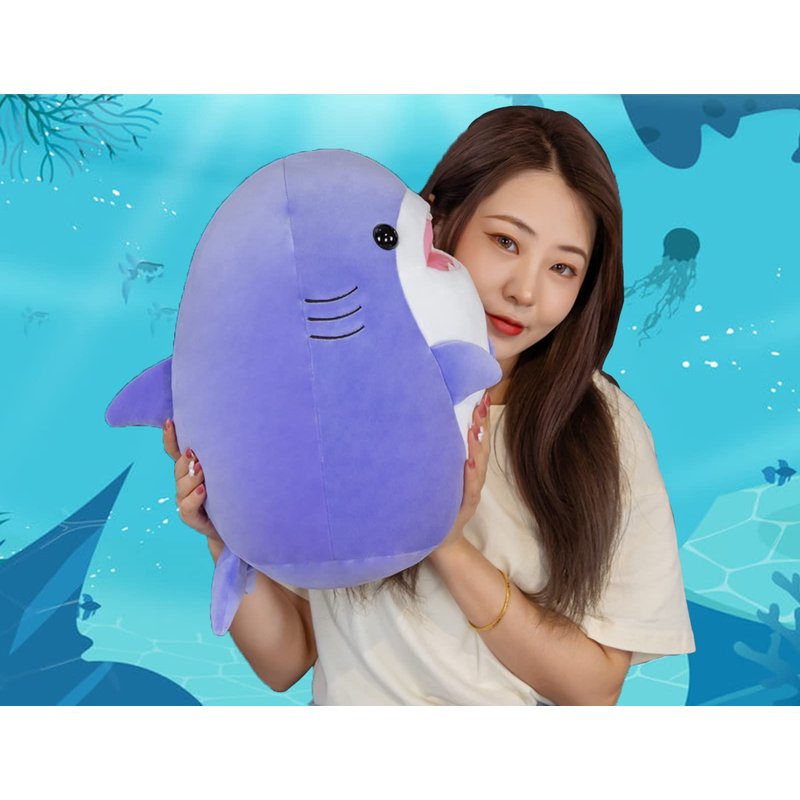- DESIGN AND QUALITY SHARK MATERIAL - The stuffed animal Shark pillow has Adorable expression and exquisite detail design. Everyone will treasures this cuddly Blue Shark plushies. The Shark plush pillow is made of safety breathable PPcotton friendly for kids. Floppy plush surface and double stuffed PPcotton inside of the Shark plush toy give you irresistible feeling when you hugging with blue Shark anime pillow. soft and cuddly, could be wash, safe for your kids.